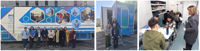 Continuing its busy schedule, the MSU travelled onto Glasgow Caledonian University where it was used in partnership with the NHS 24 Advanced Practice team and NHS Greater Glasgow and Clyde. Staff learned and refreshed their skills on how to teach simulation-based education. You can hear more about this on the CSMEN Facebook page.